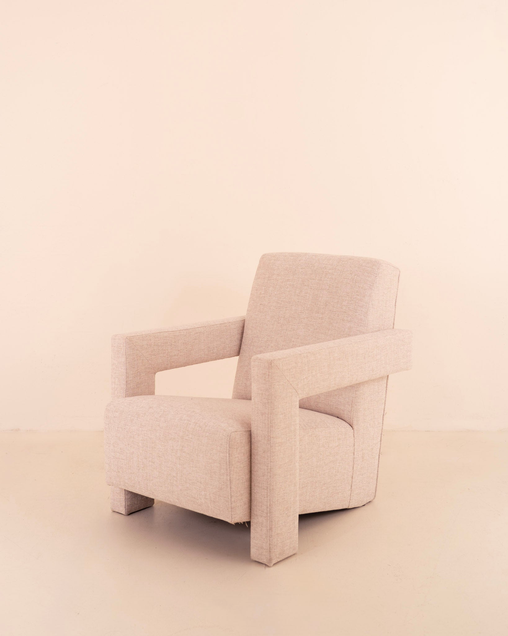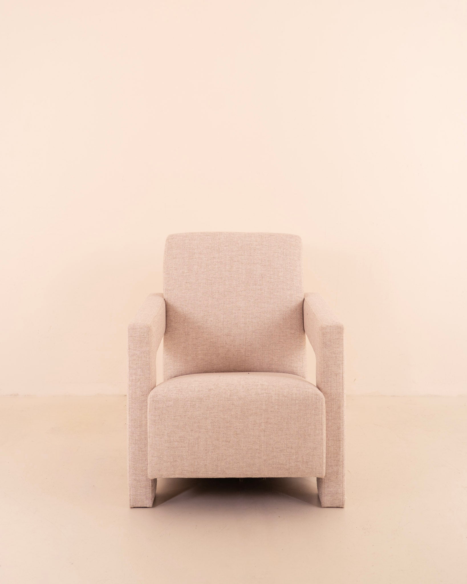 Preciosa butaca de diseño contemporáneo tapizada en beige.