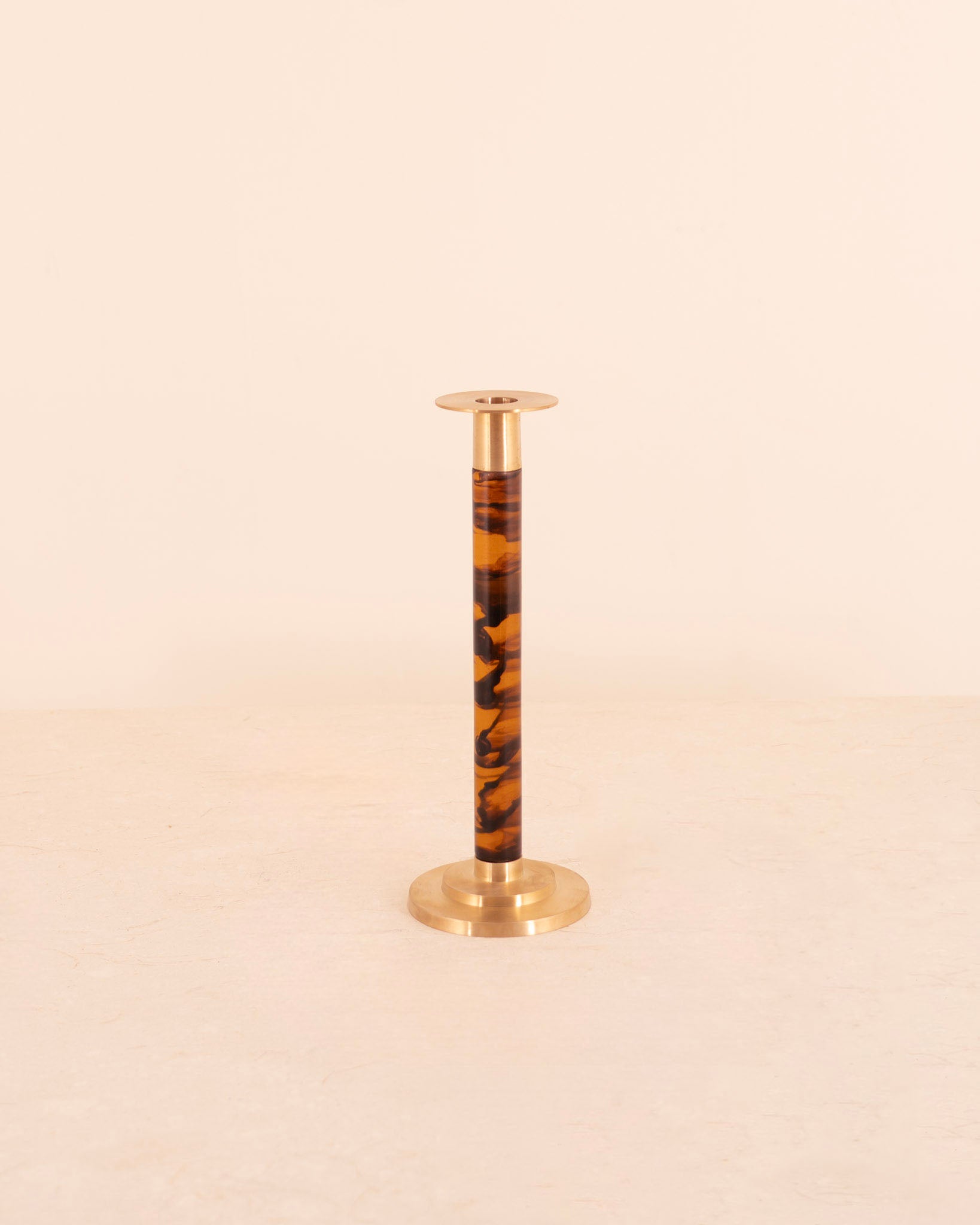 Precioso candelabro con metal dorado y estampado en tonos marrones.
