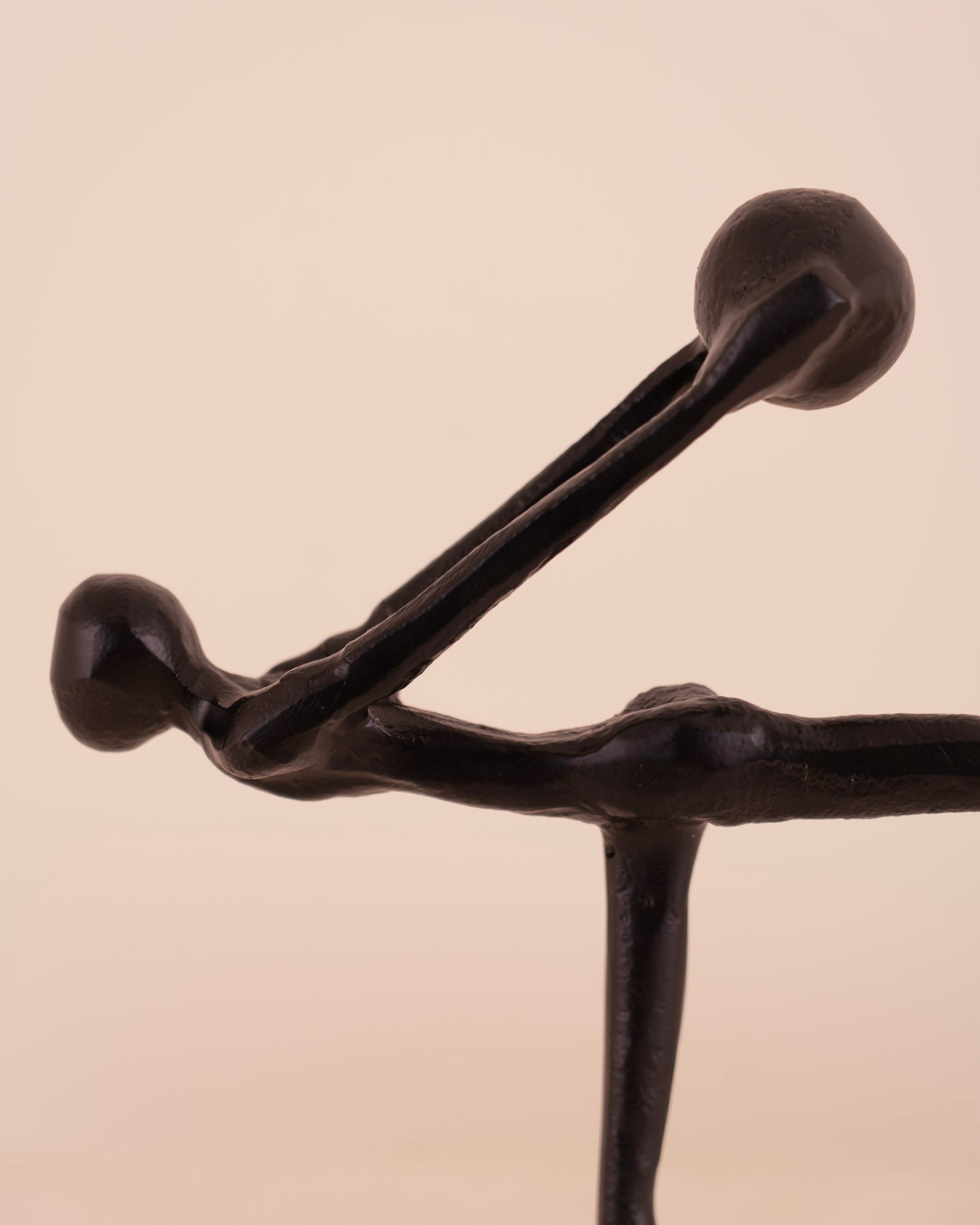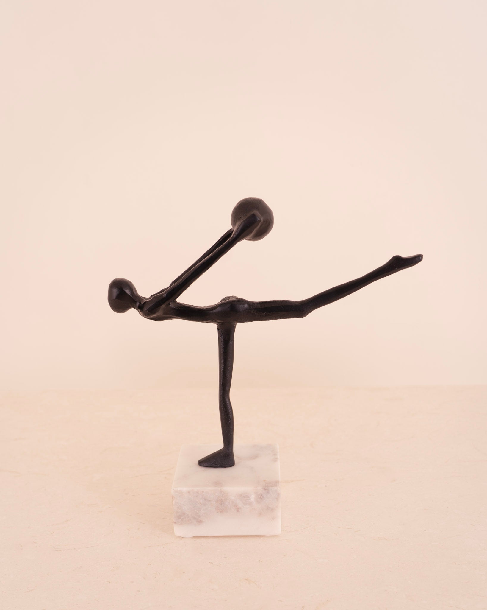 Preciosa escultura con peana de cerámica y figura con lanzamiento de pelota.