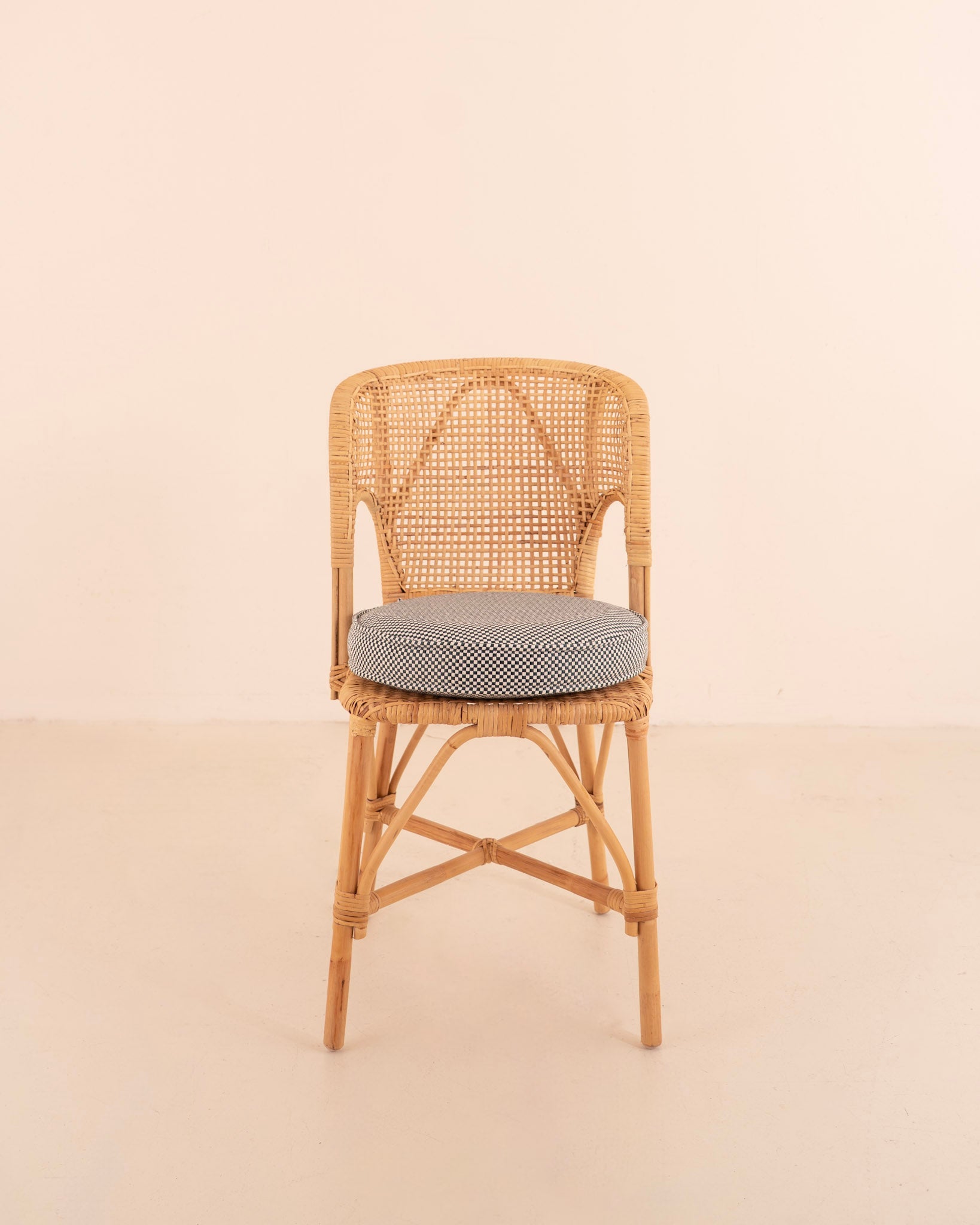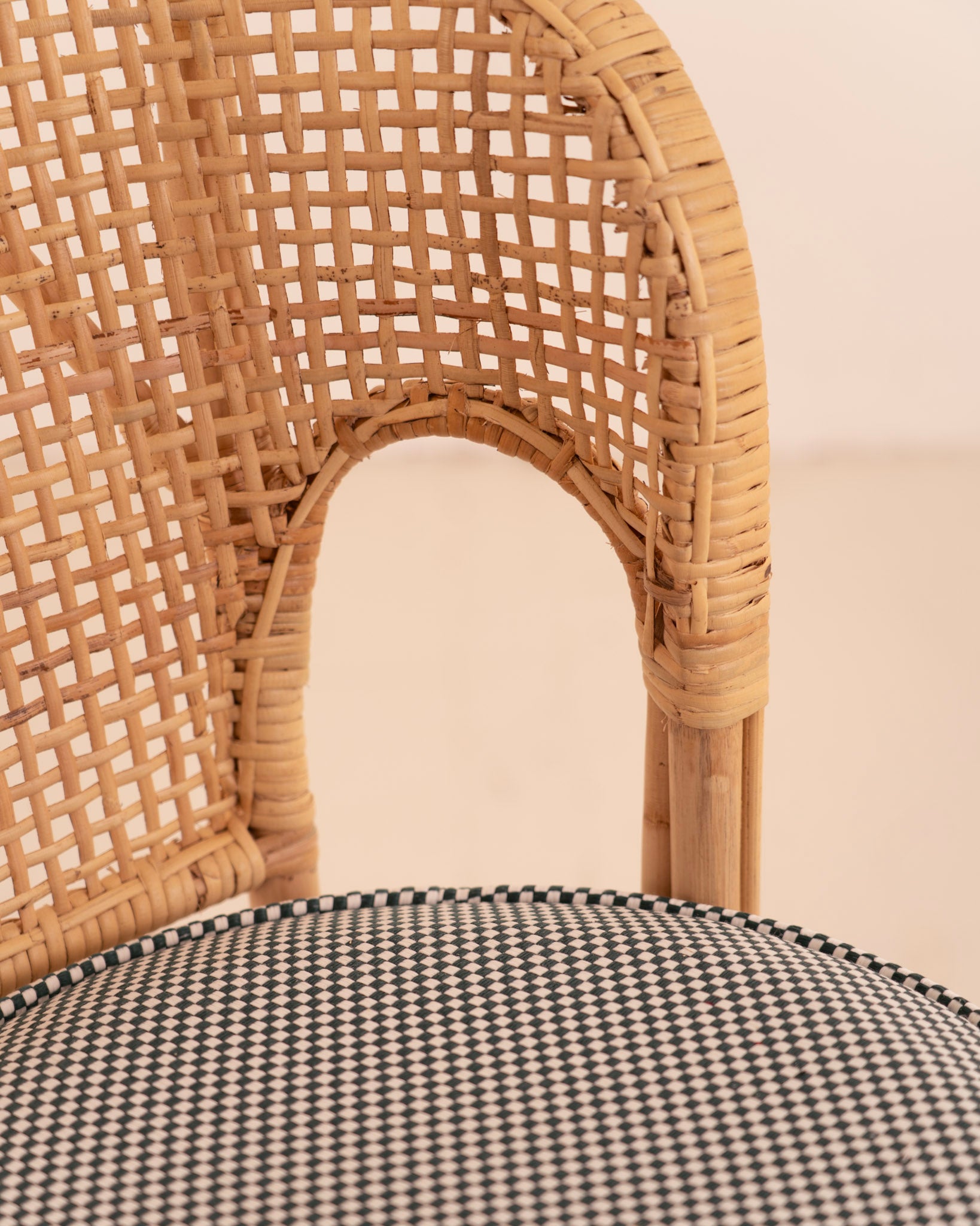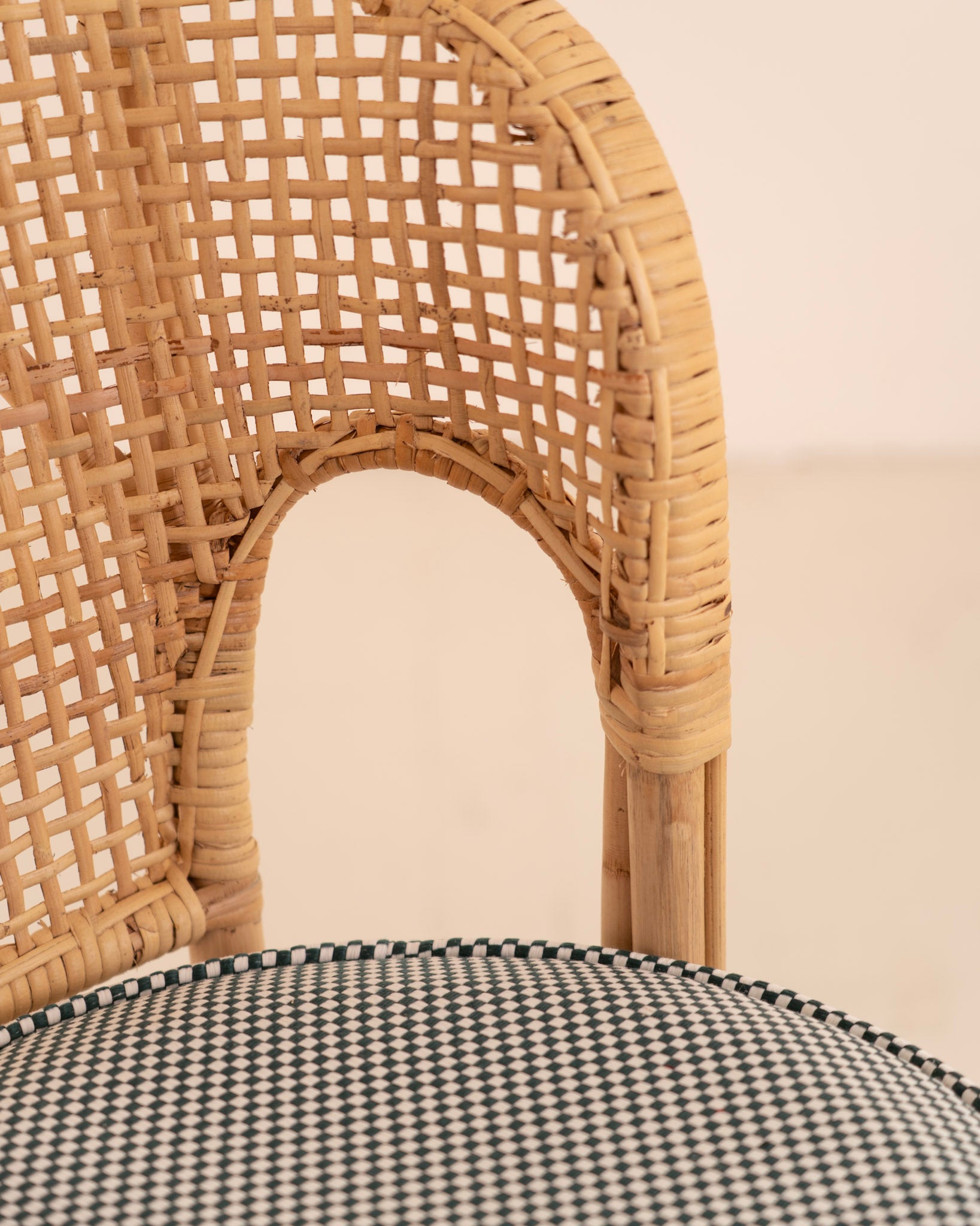 Galleta circular fabricada en tela aqua-clean con estampado de cuadros en tonos blanco y verde oscuro.