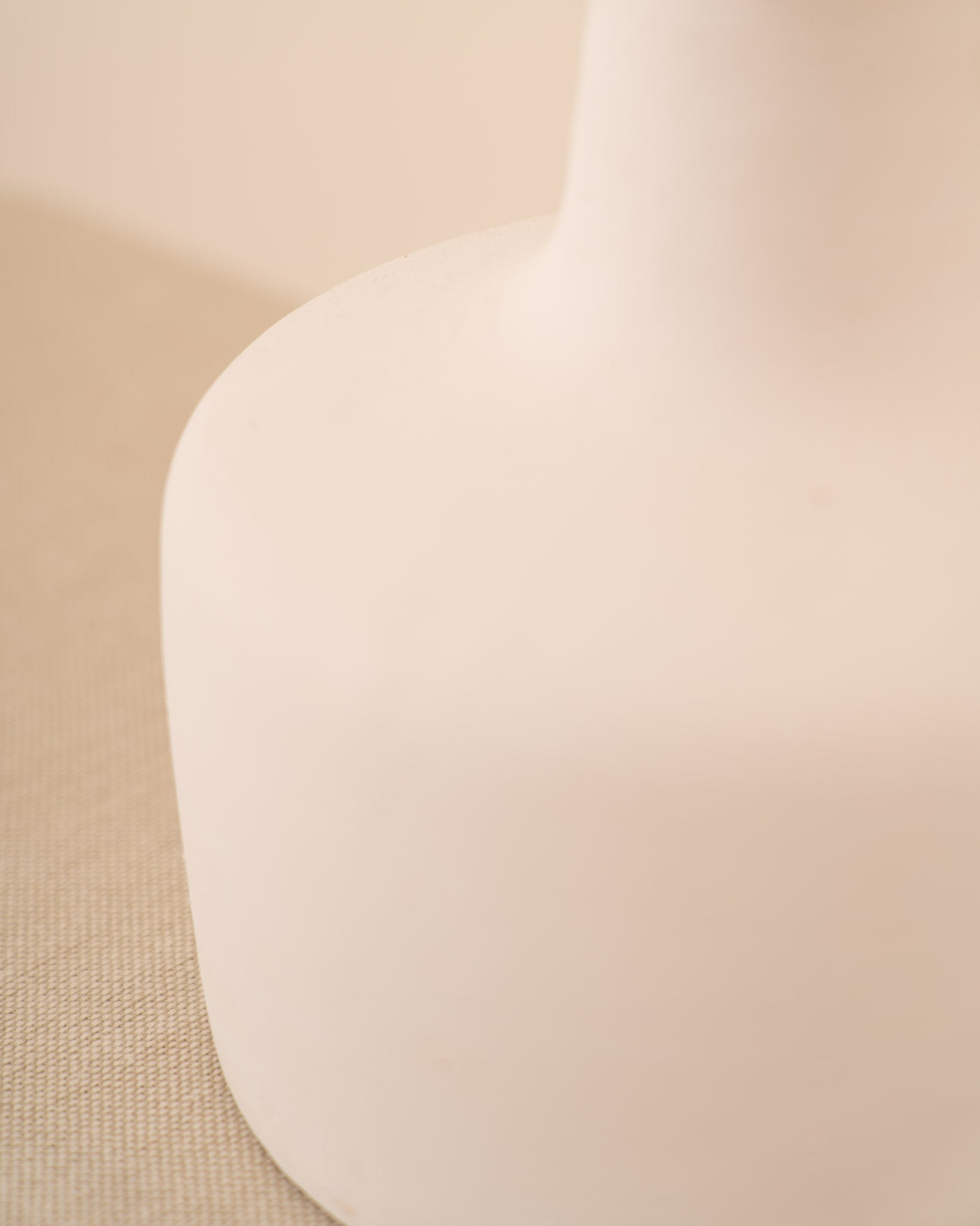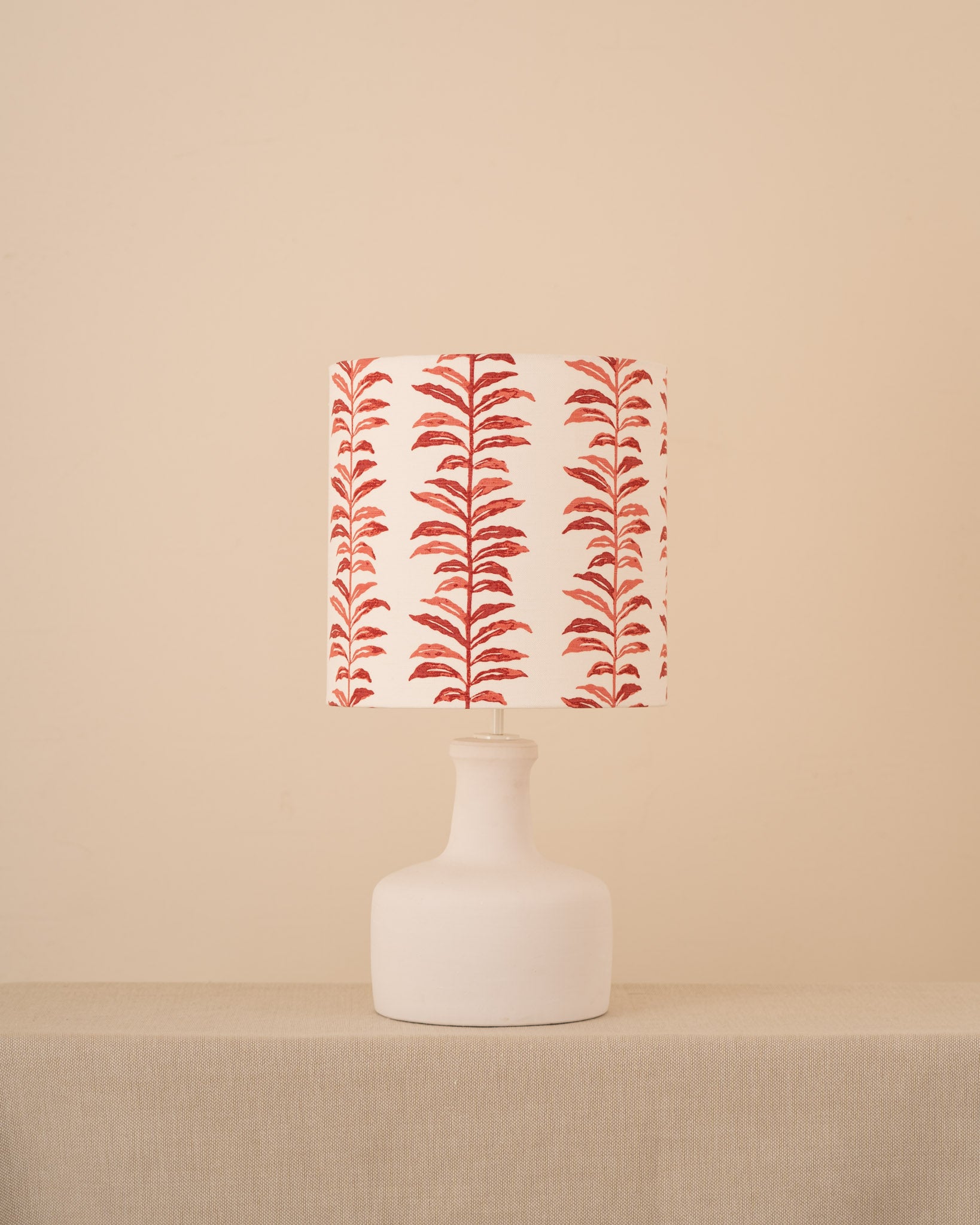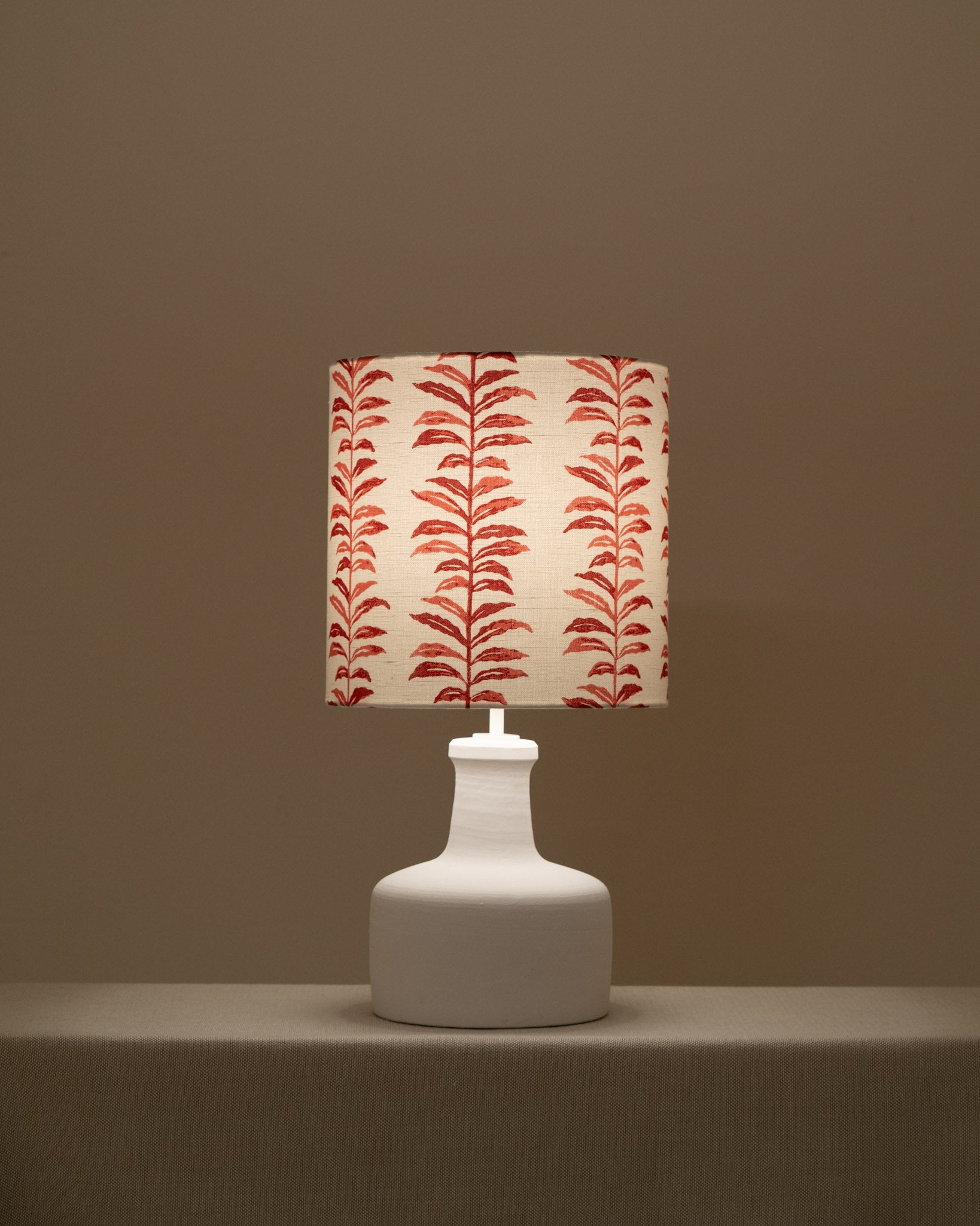 Lámpara de sobremesa de diseño artesanal con efecto arenado acabado en blanco. ¡Combínala con la pantalla de flores blanco y rojo! Pantalla no incluida en el precio.