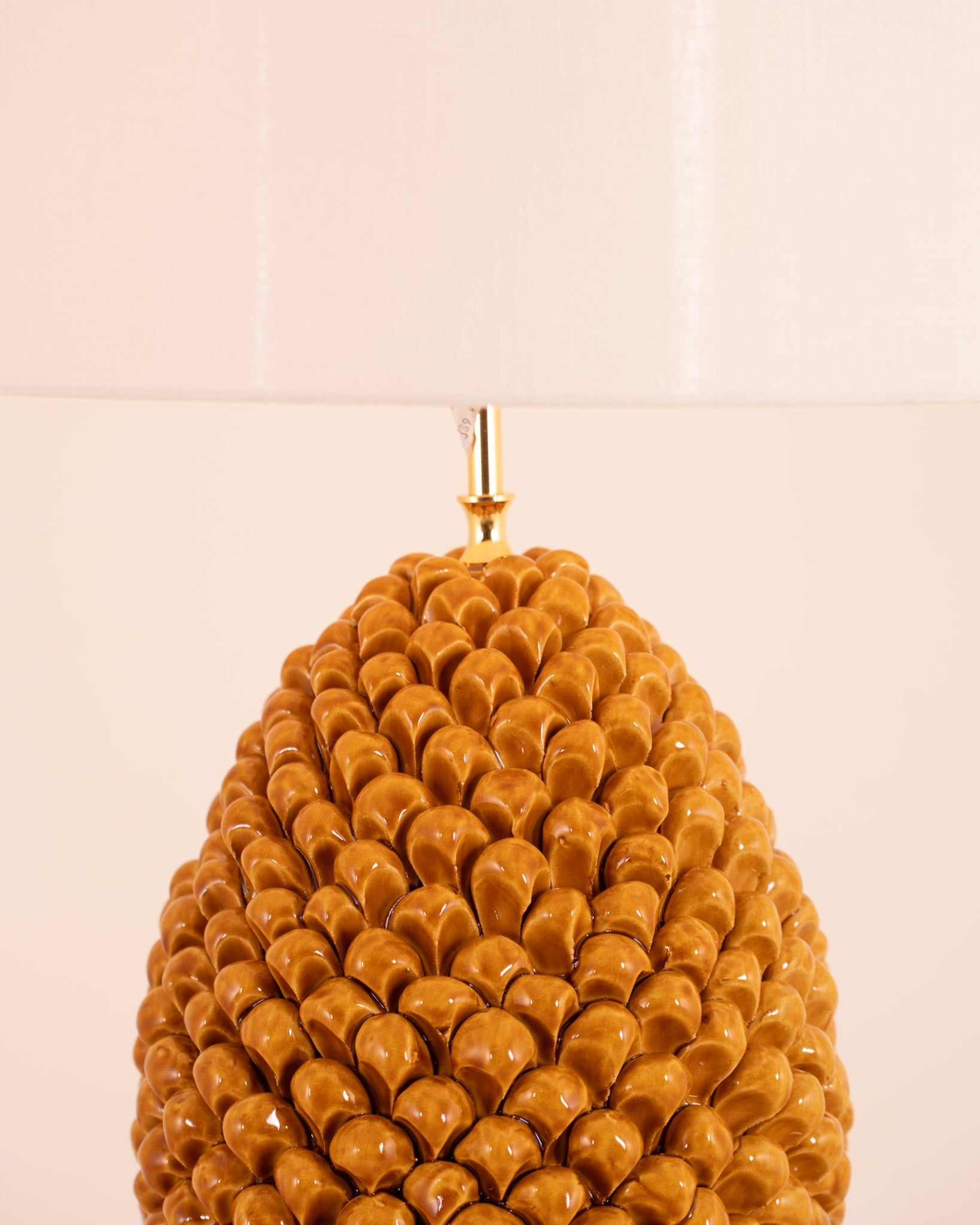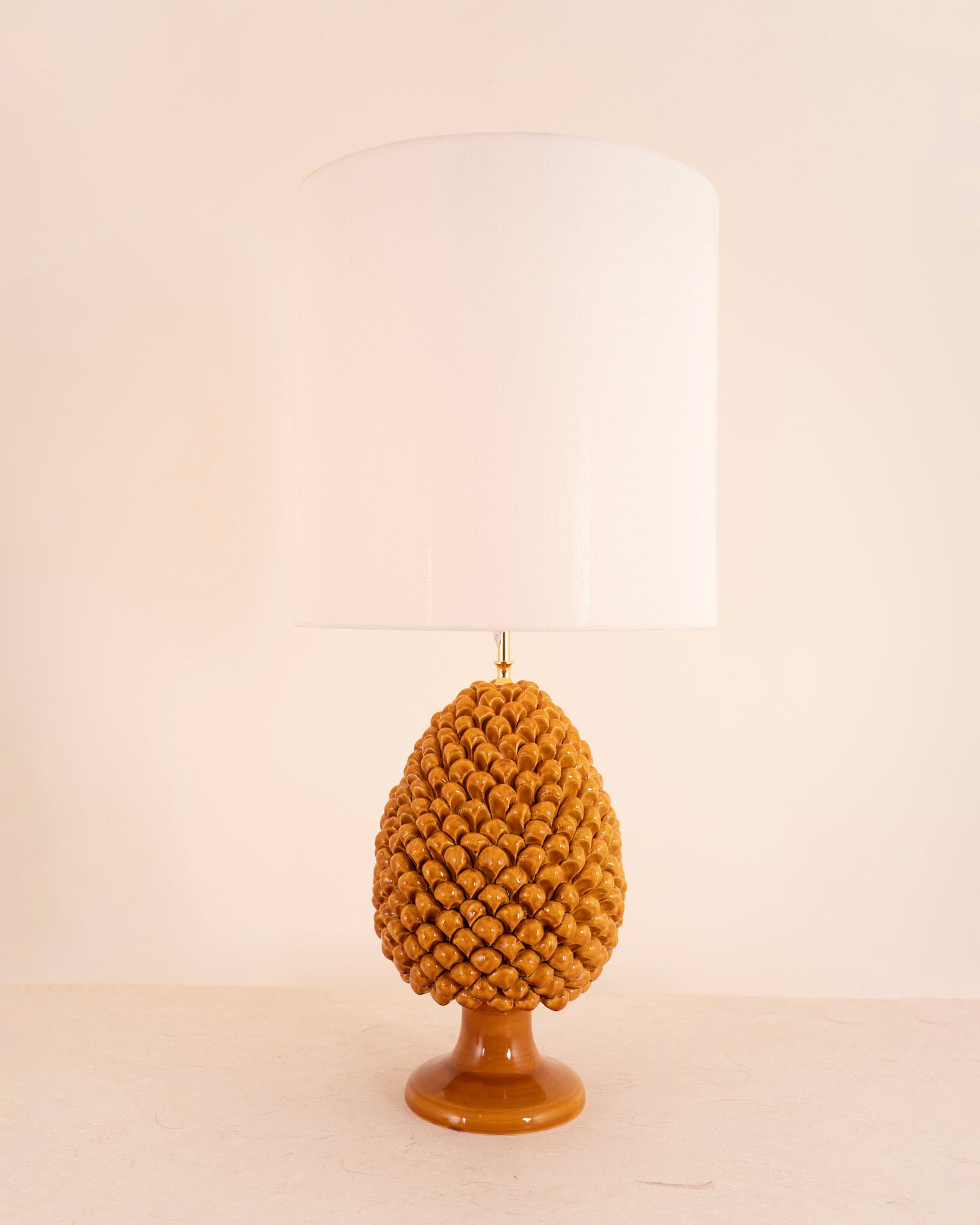 Espectacular lámpara de sobremesa fabricada en porcelana acabada en color mostaza.