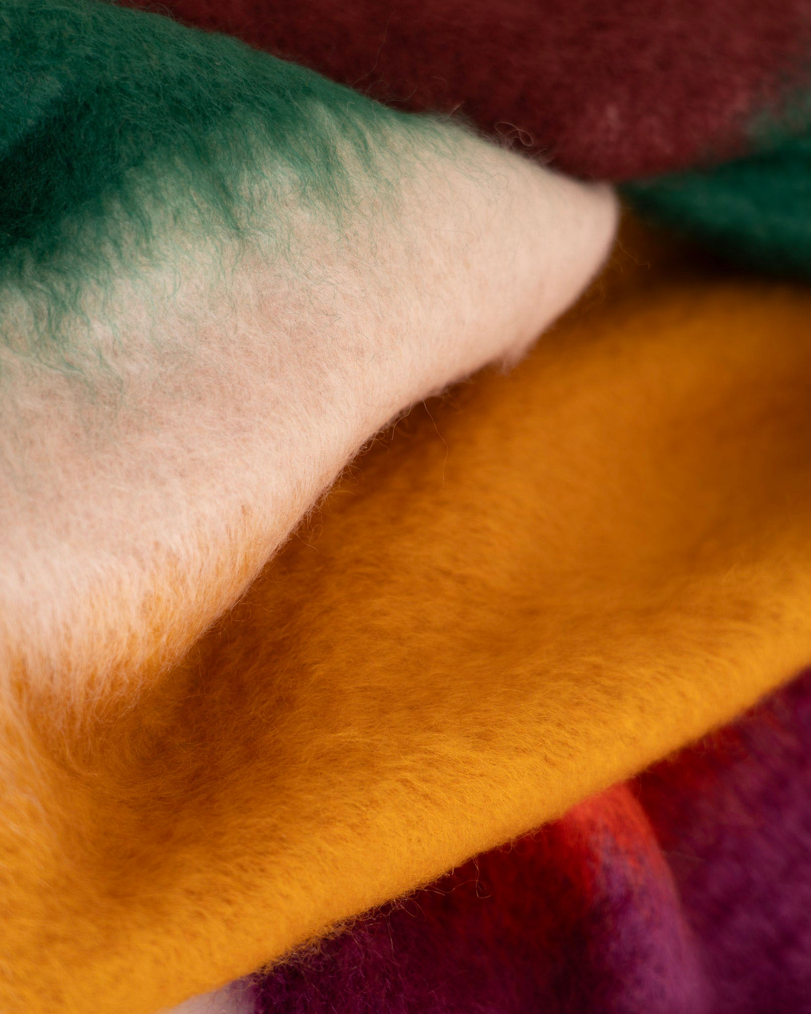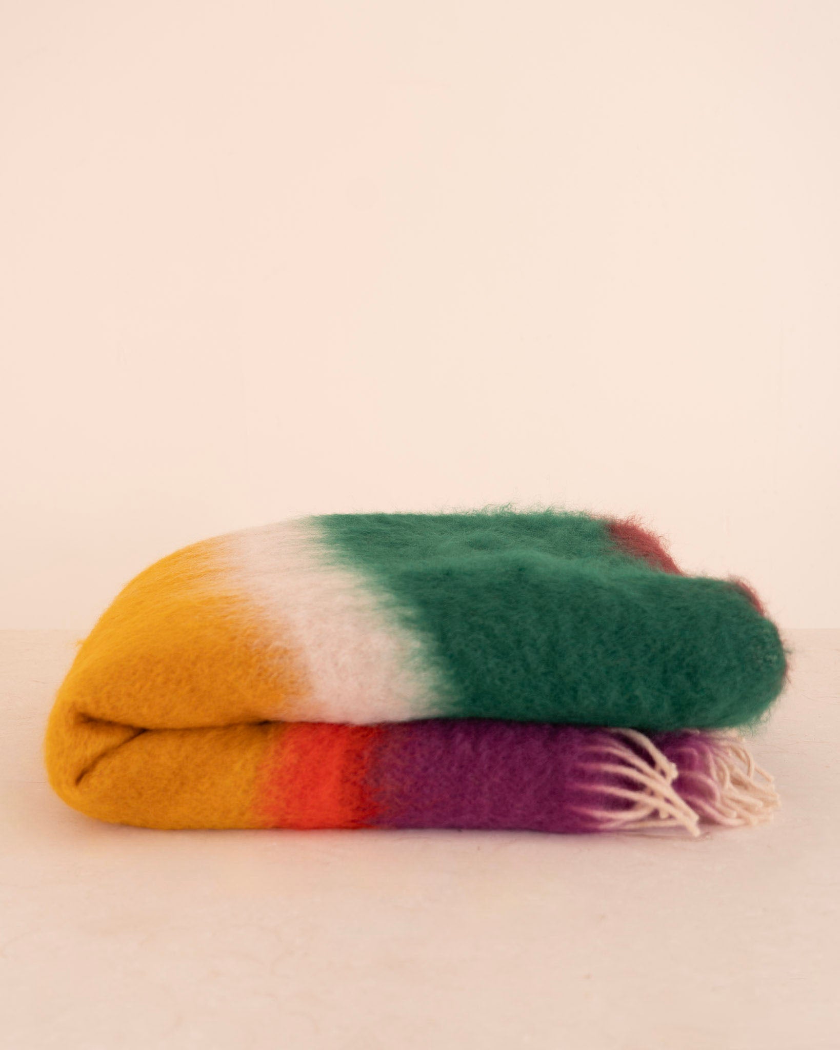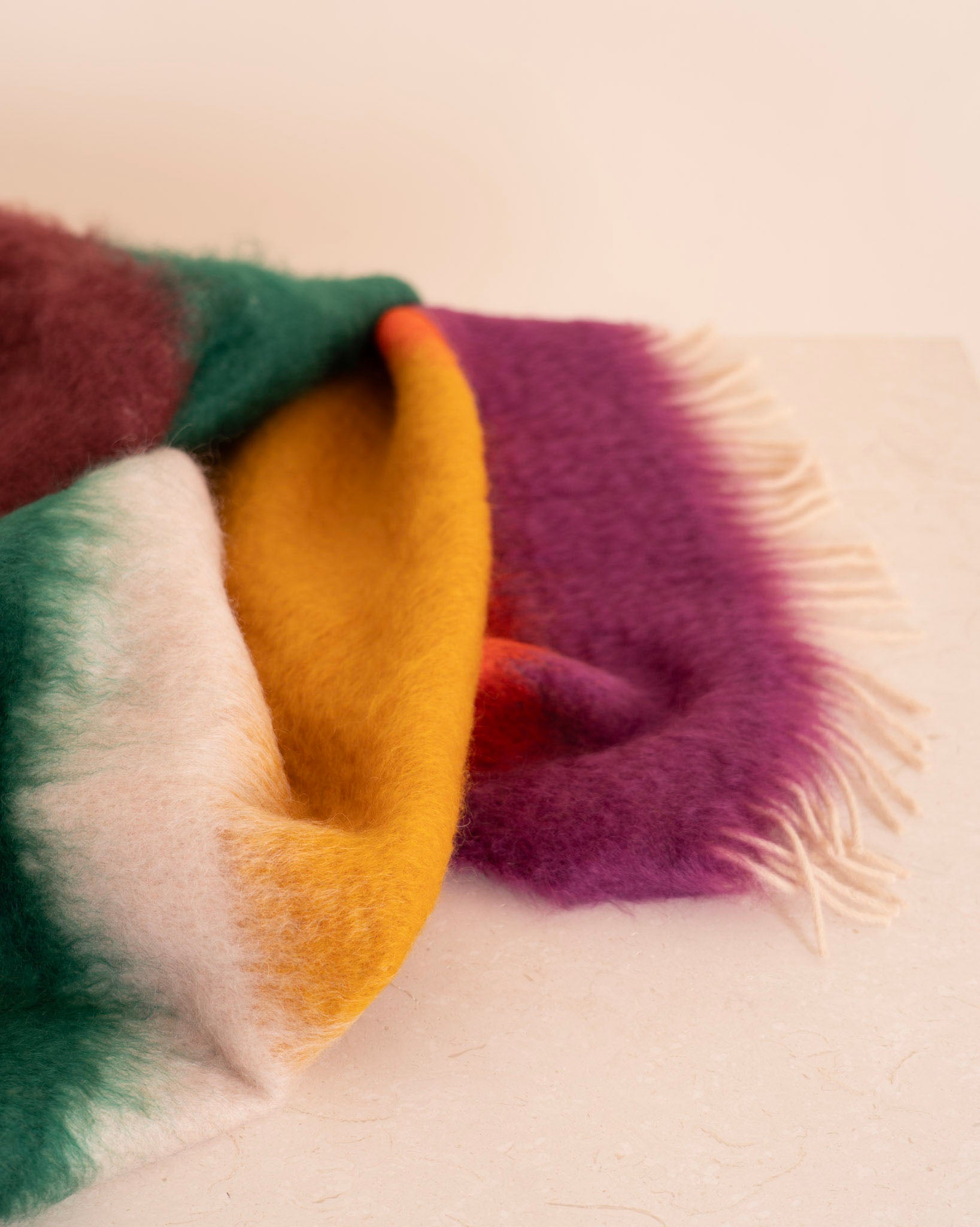 Manta de Ezcaray fabricada en mohair y lana Mattise en estampado multicolor.