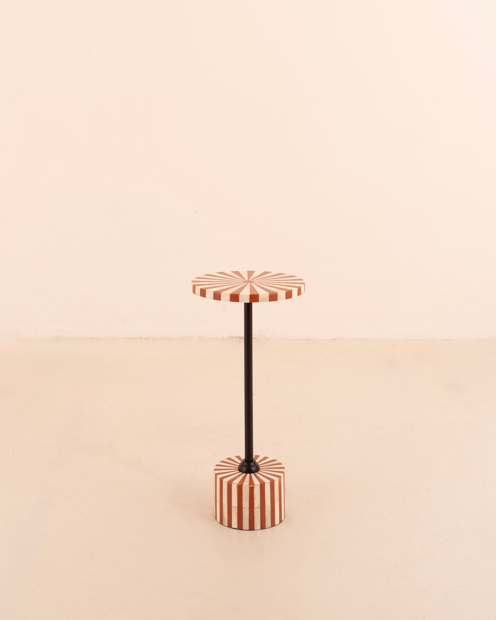 Mesa auxiliar fabricada en hueso en tono blanco y terracota.