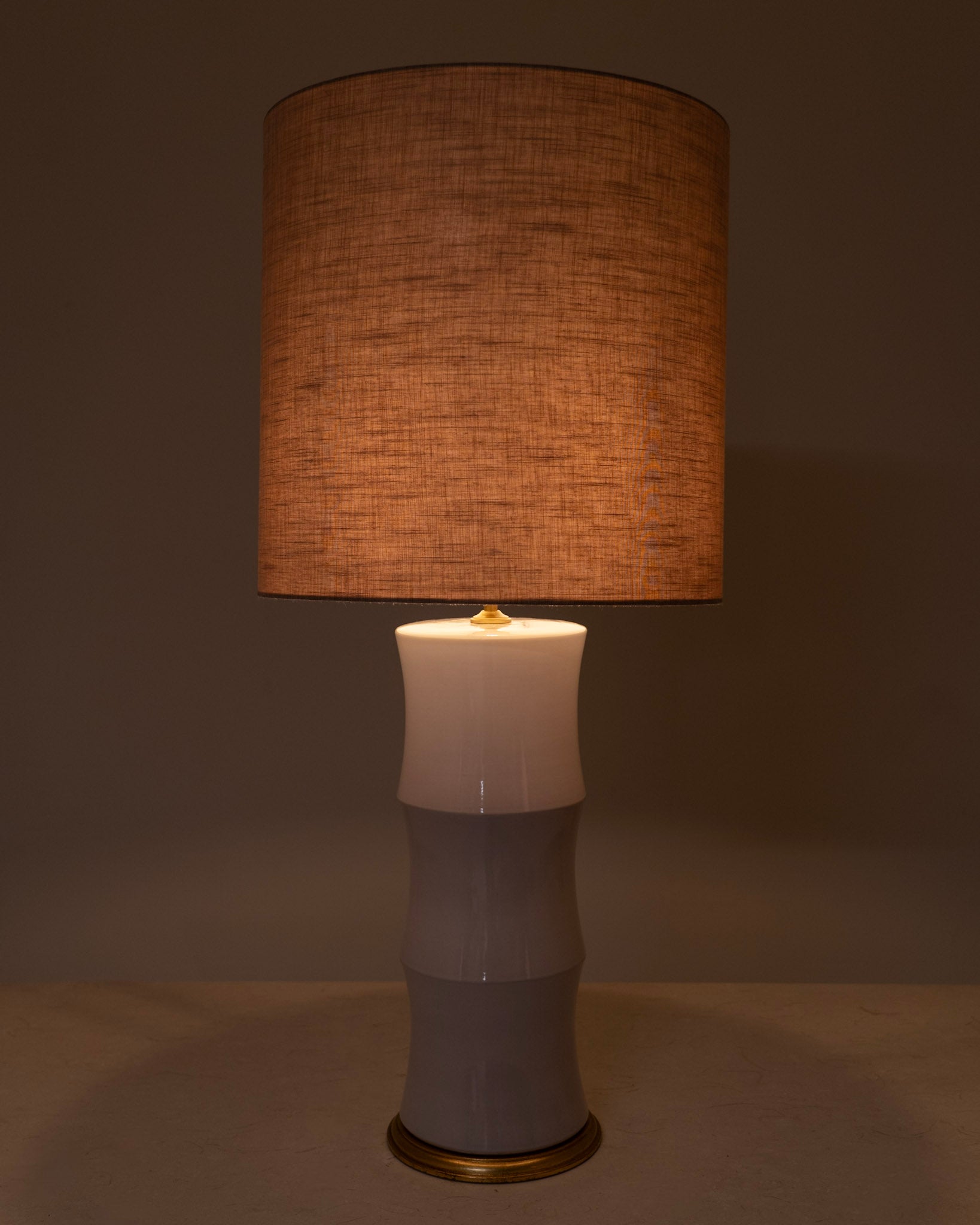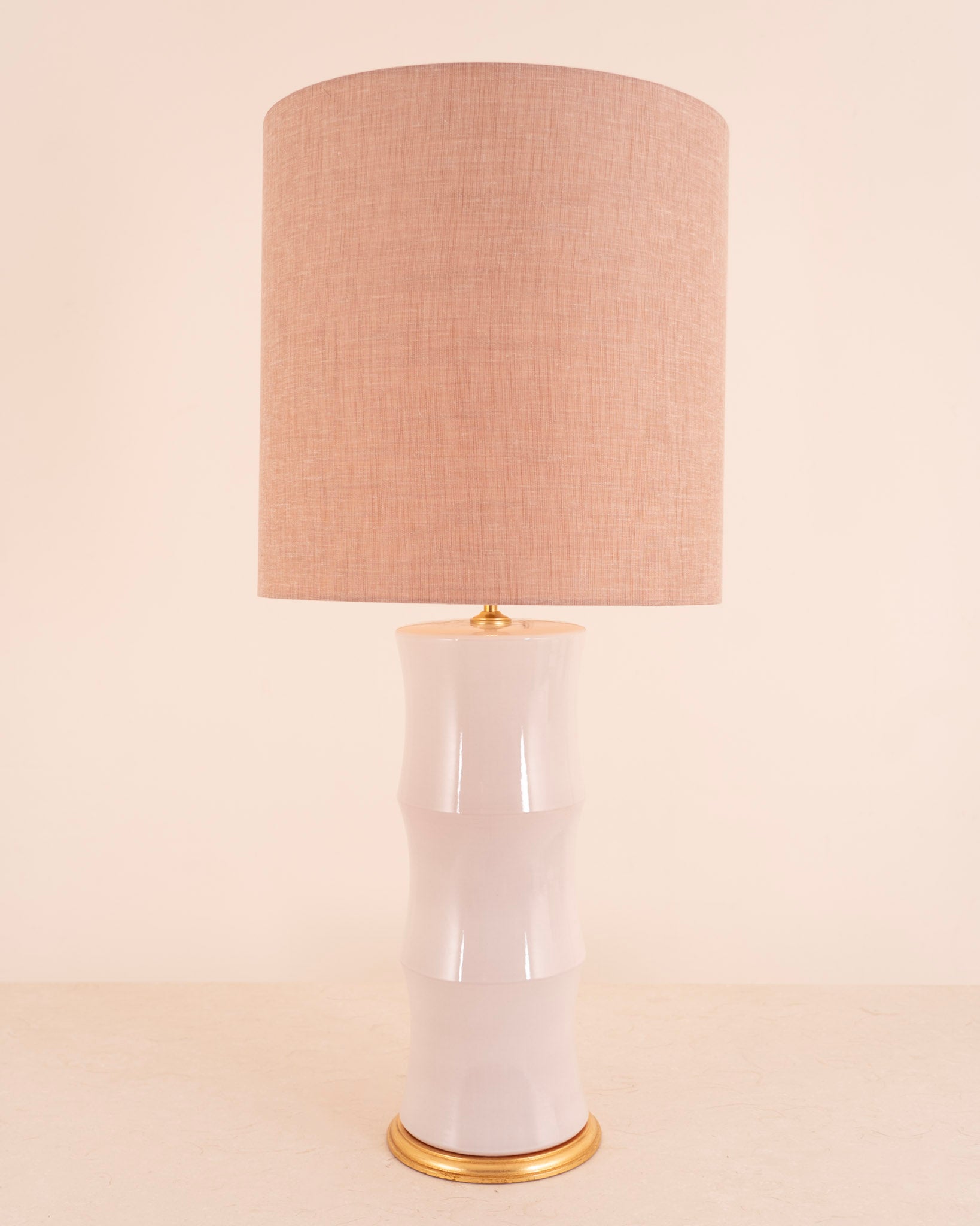 Pantalla cilíndrica fabrica en lino y algodón color saco.
