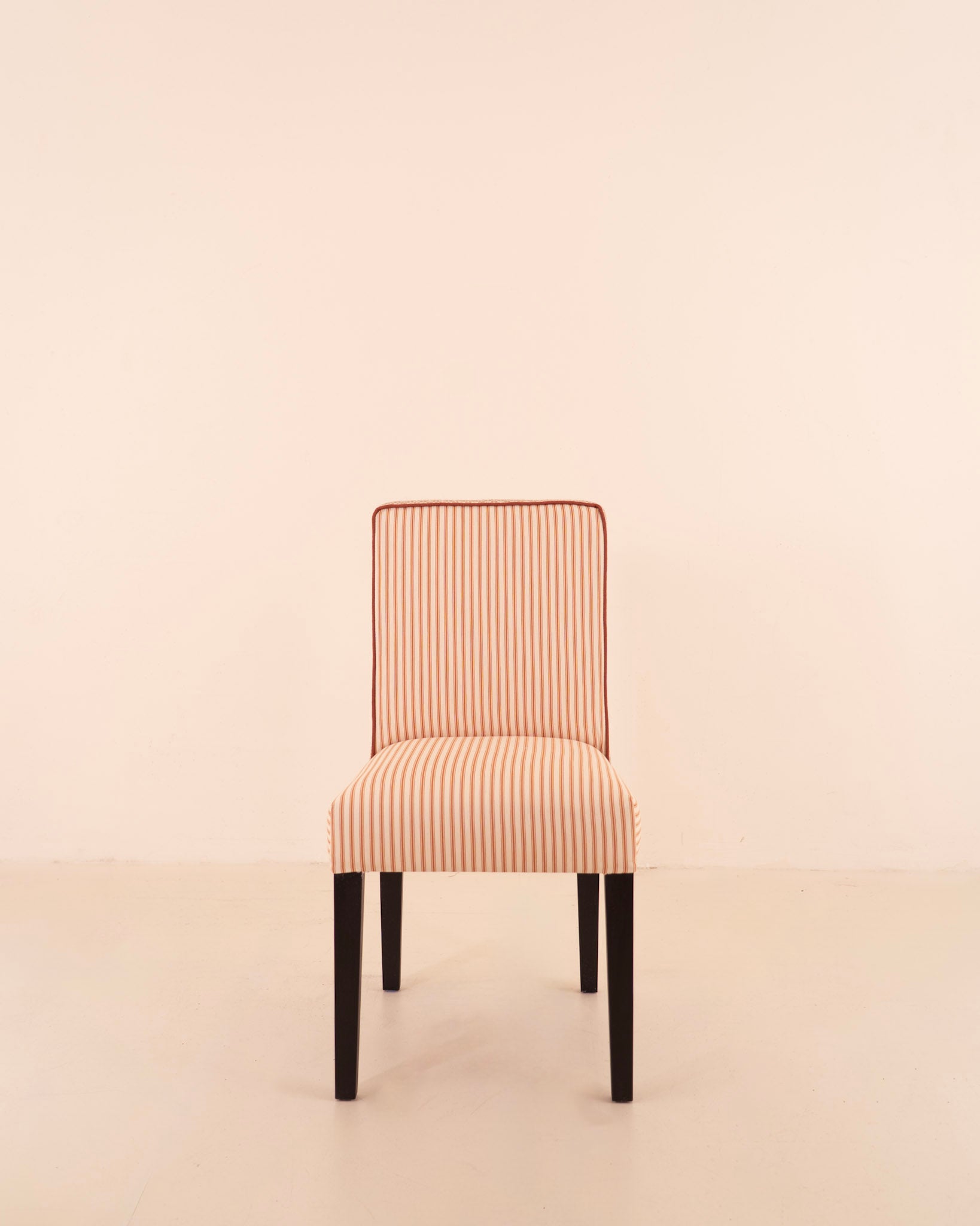 Preciosa silla de inspiración clásica y tapizada en varias combinaciones de telas para dar ese toque actual a tu comedor.